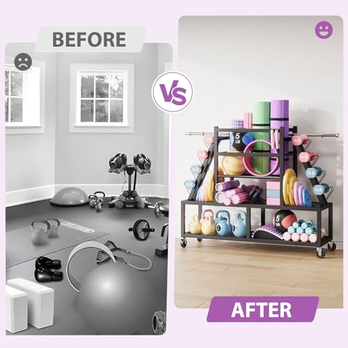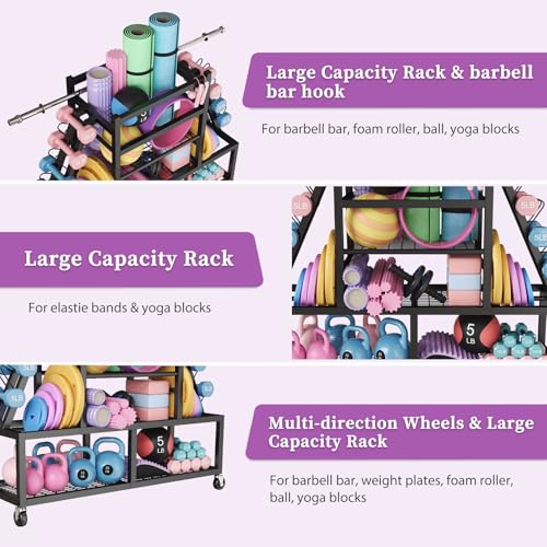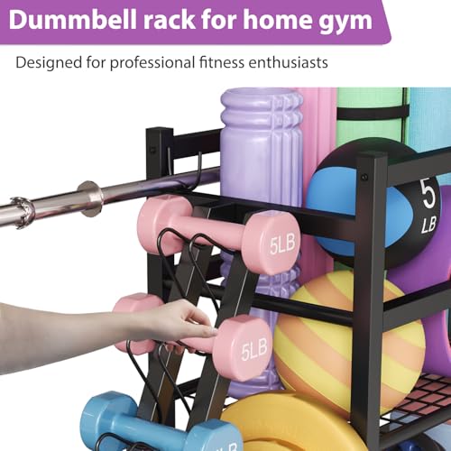 Specification: Dumbbell Rack Weight Rack Storage-Large Dumbbells Rack Home Gym Storage,Multilevel Workout Storage Organizer with Wheels and Barbell Holder,Perfect for Yoga Mat Balls Kettlebells and Fitness Gear,black