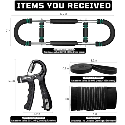 【4-piece coaching set】We have now been deeply engaged in health tools for many years and totally perceive the wants of health fans. Not solely will you get a high-quality arm and chest muscle coach throughout this purchasing journey, however additionally, you will get: 1 Countable Grip Coach (20-220lb), 2 adjustable wrist braces, 1 resistance bands (25-65 kilos). These mixtures can remedy a number of wants directly and enable you to begin your health journey.